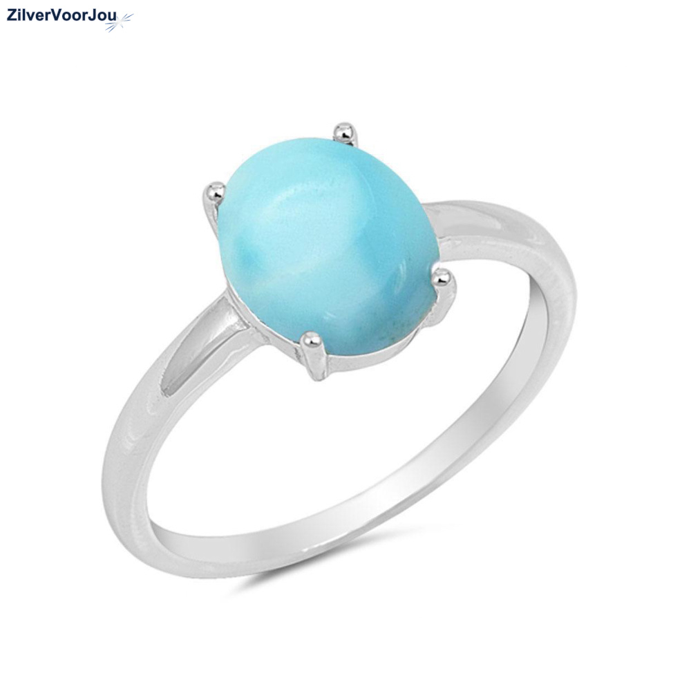 Schitterende echt zilveren ring bezet met een prachtige ovale licht blauwe larimar steen. Tijdloos en elegant. Een prachtig juweeltje met een edelsteen.