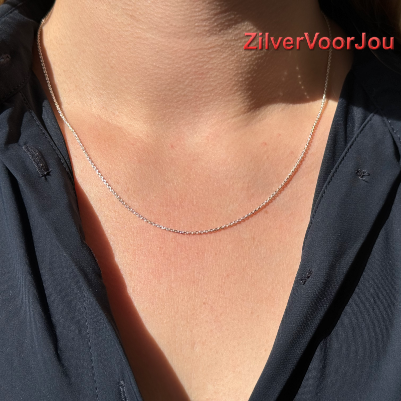 Echt zilveren ovale kabelketting met een totale lengte van 50 cm en 1.4 mm breed