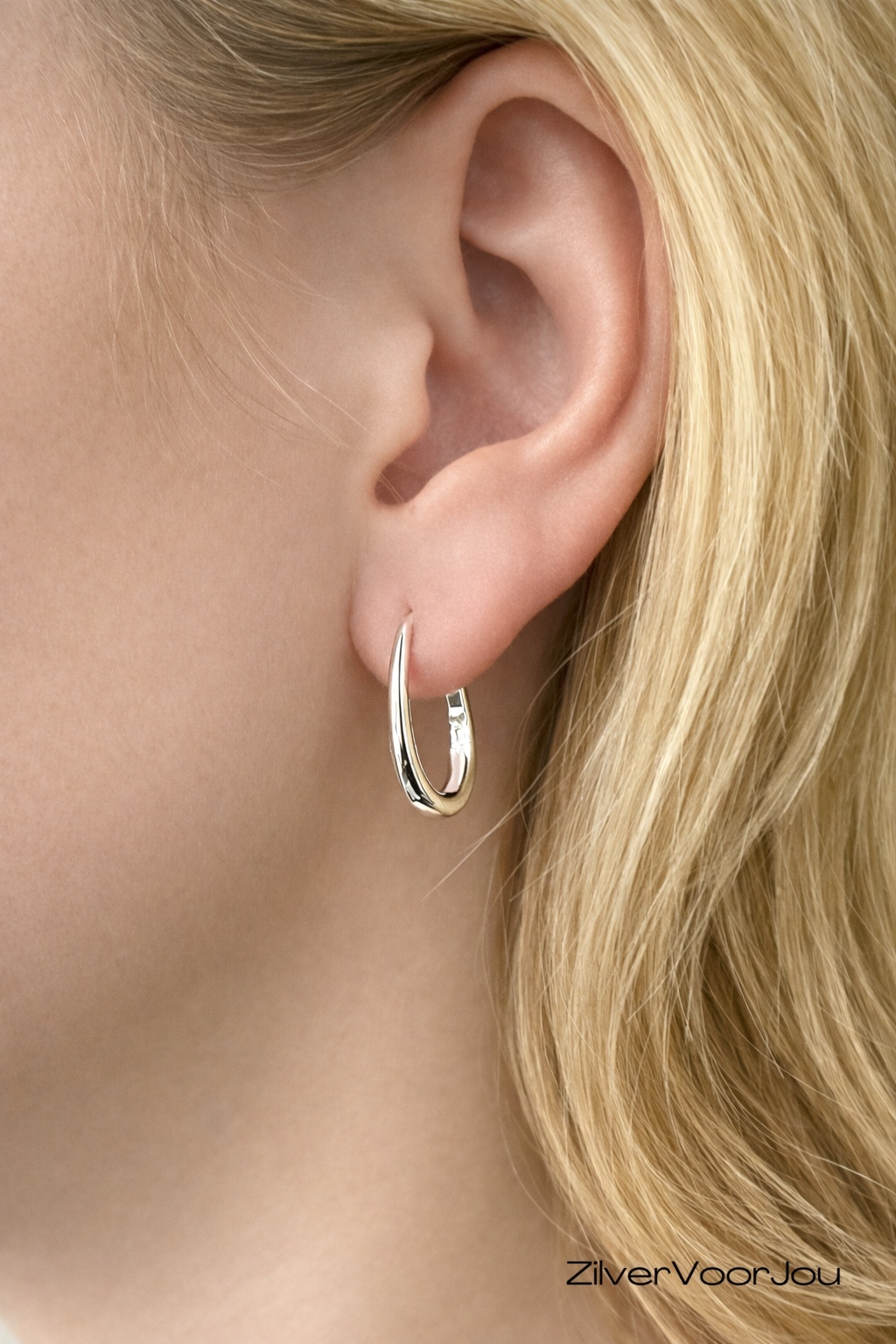 De oorringen beginnen bovenin smal en lopen 3 mm breed uit naar onderen. Een must have oorring die altijd en overal bij te dragen is. De oorringen hebben een totale lengte van 20 mm en zijn gemaakt van 925 zilver