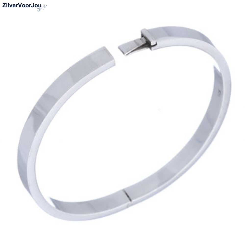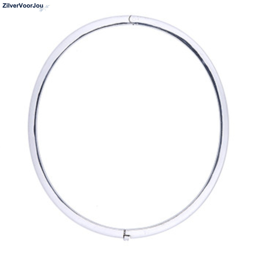 Prachtige hoogglans ovale zilveren slavenarmband van 5 mm breed, met een rechthoekig buis.