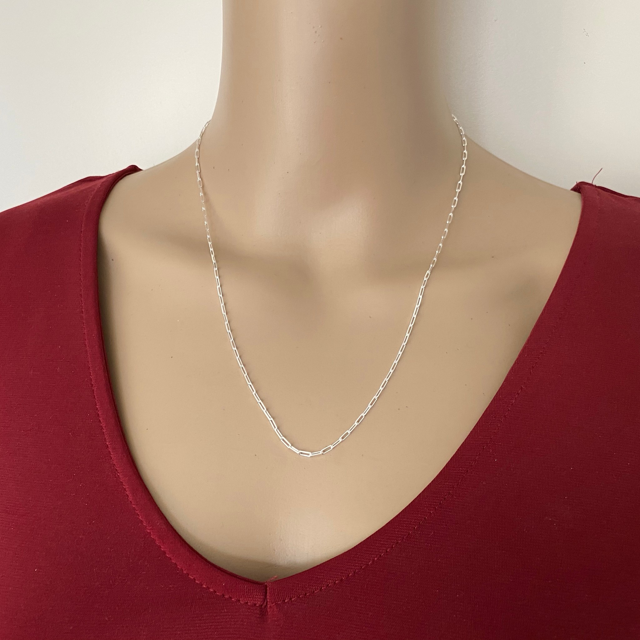 Staple of 'paperclip' schakel ketting gemaakt van 925 zilver. Mooie hippe lengte ketting om zo te dragen of om te combineren met meerder kettingen voor een lagen kettingen look.