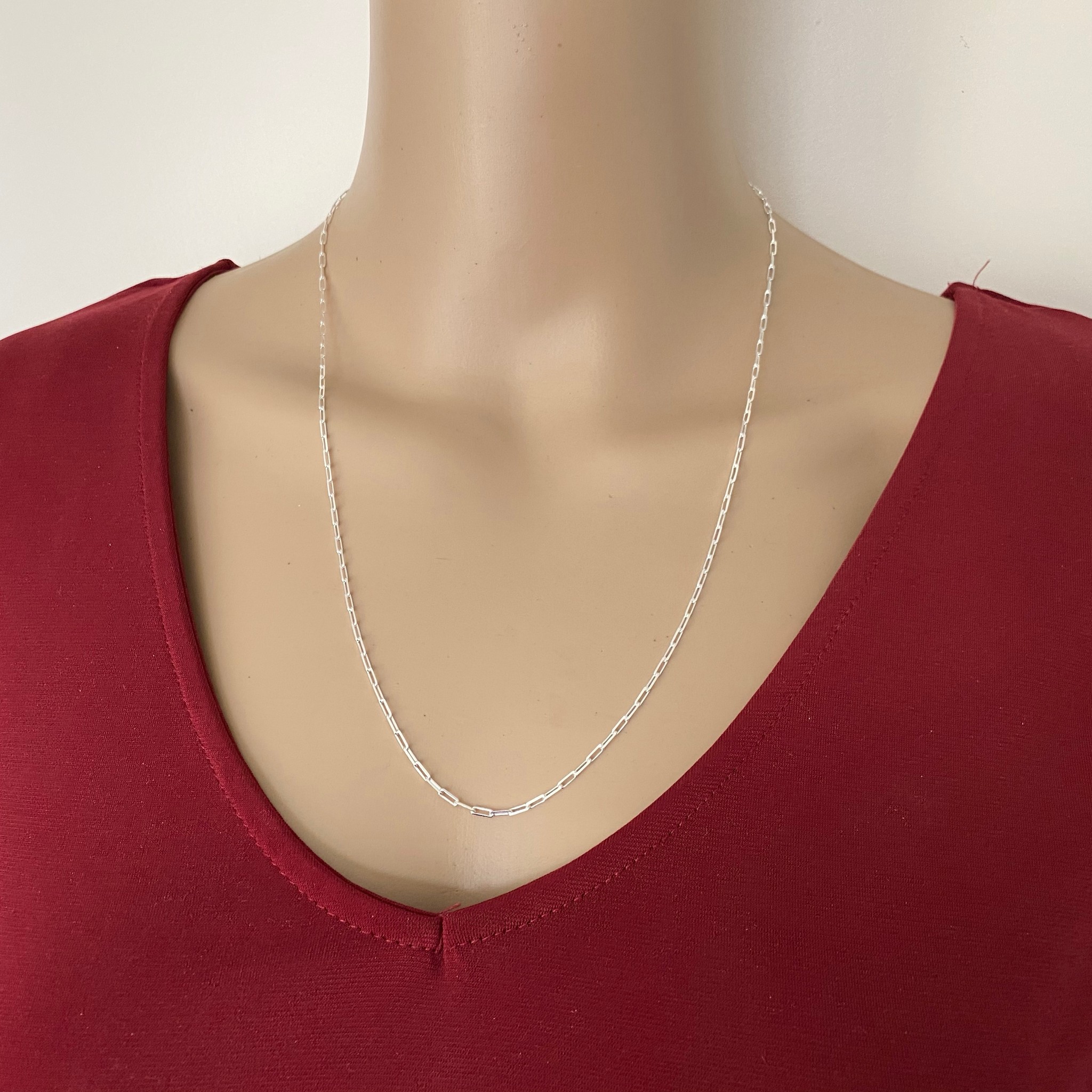 Paperclip staple schakel ketting in een mooie lange lengte van 55 cm. Gemaakt van 925 zilver prachtig om te combineren met meerder kettingen of een hangertje.