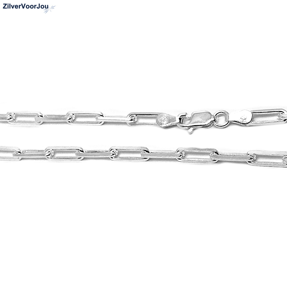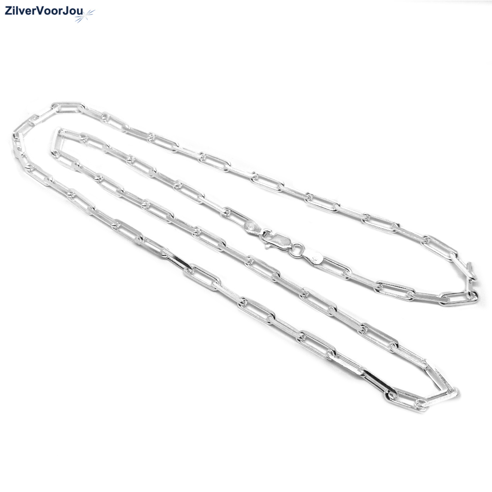 Mooie lange paperclip staple ketting gemaakt van 925 zilver. De ketting heeft een mooie lange lengte van 60 cm. Het schakeltje is 3.5 mm breed. De opening in de schakel is circa 2x5 mm groot