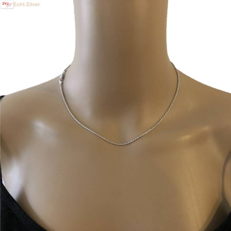 De ketting ziet er uit als een zilveren gedraaid touwtje, vandaar de naam rope ketting.