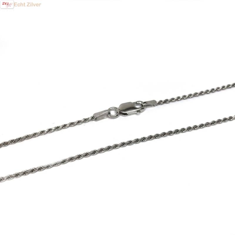 Echt zilveren en rhodium rope lengte ketting van 40 cm en 1.4 mm breed.