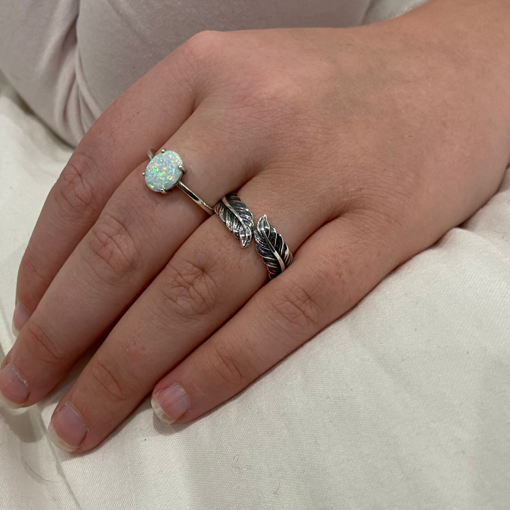 Elegante echt zilveren ring met aan beide zijden een veer. Gemaakt van 925 zilver en geoxideerd.