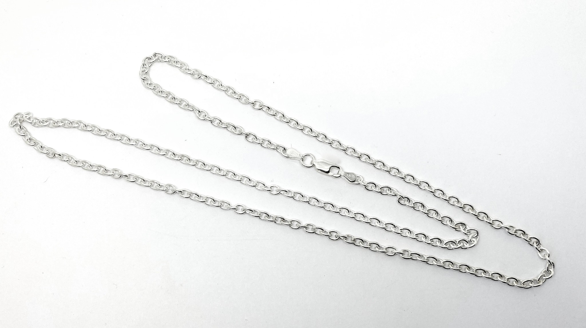 Stevige ronde schakel ketting met een totale lengte van 50 cm. De ketting schakels zijn 3,1 mm breed. Mooie ketting om zo te dragen of in combinatie met een zilveren kettinghanger. Uniseks ketting.