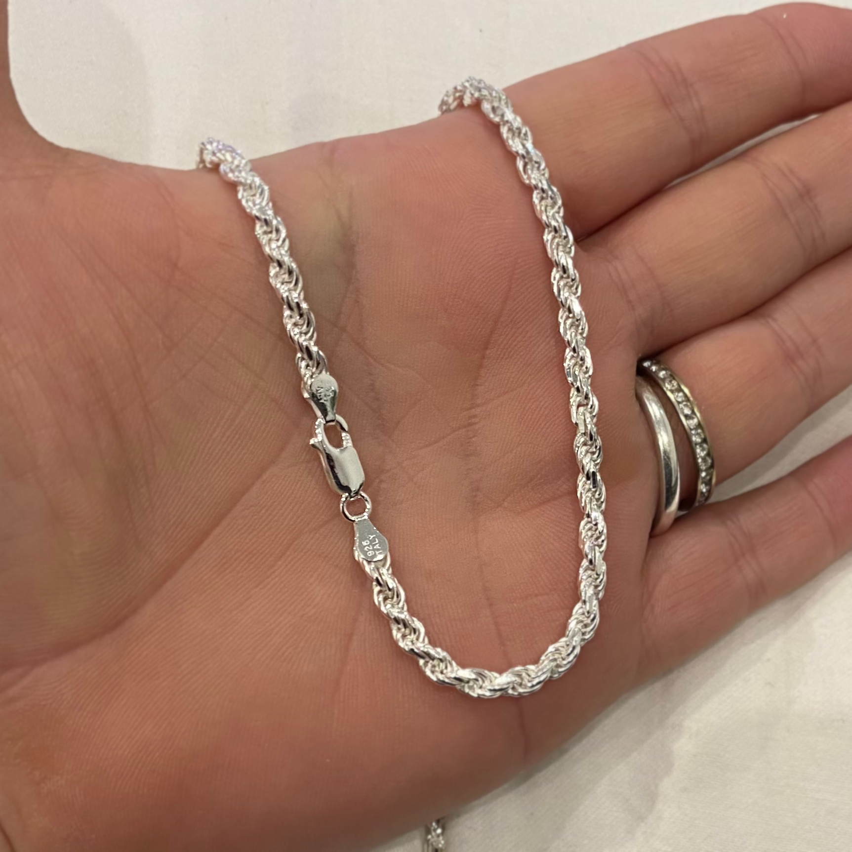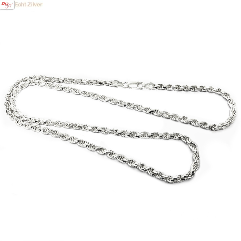 Prachtige dikke en massieve koord of rope schakel ketting. De ketting is gemaakt van 925 zilver en heeft een totale lengte van 45 cm. De schakel is 4 mm breed. Schitterende uniseks kabel ketting