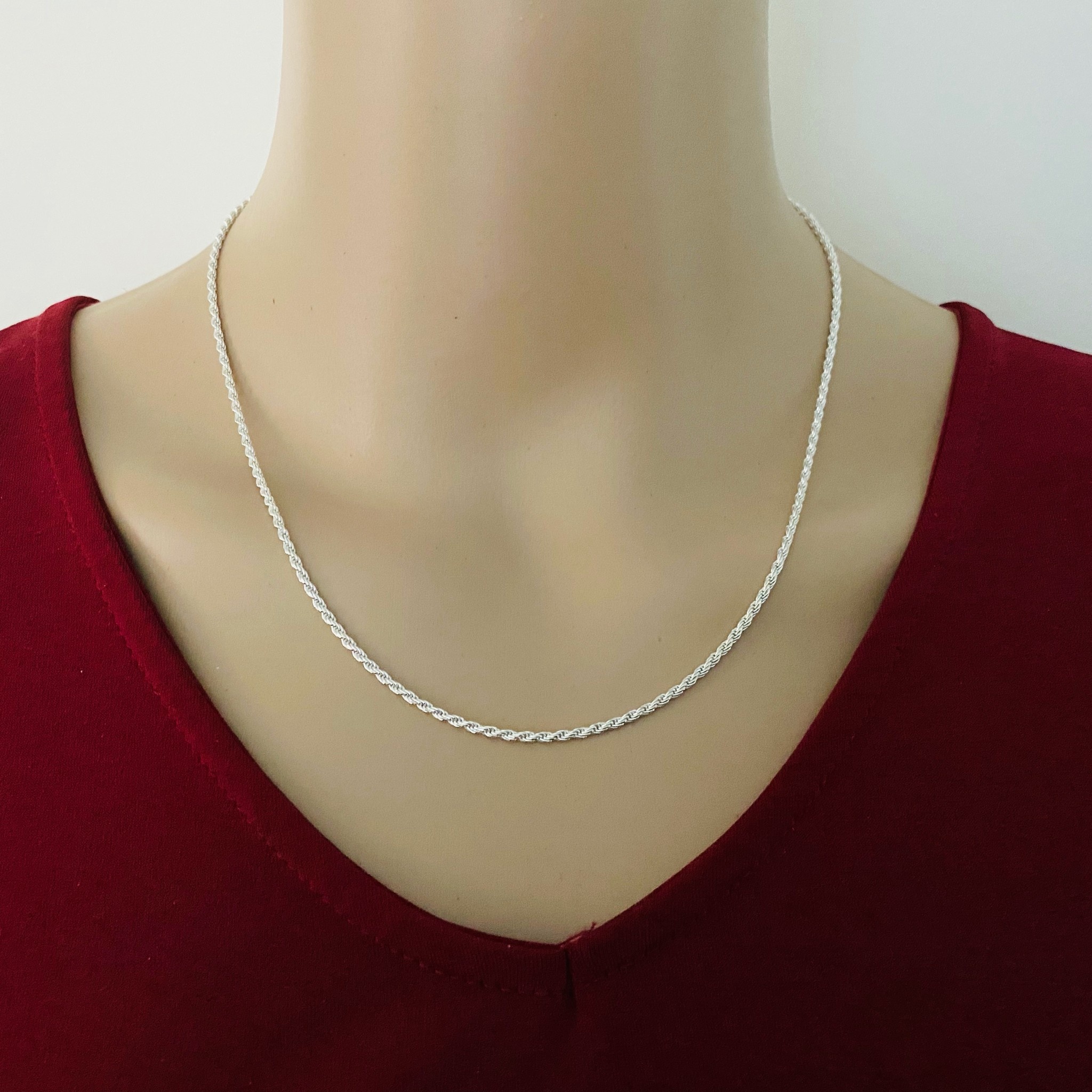 De ketting ziet er uit als een zilveren gedraaid touwtje, vandaar de naam rope ketting.