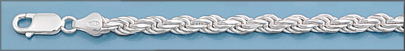 Dikke massieve koord of rope ketting gemaakt van 925 zilver. Schitterende heren ketting met een lengte van 50 cm en 5 mm breed