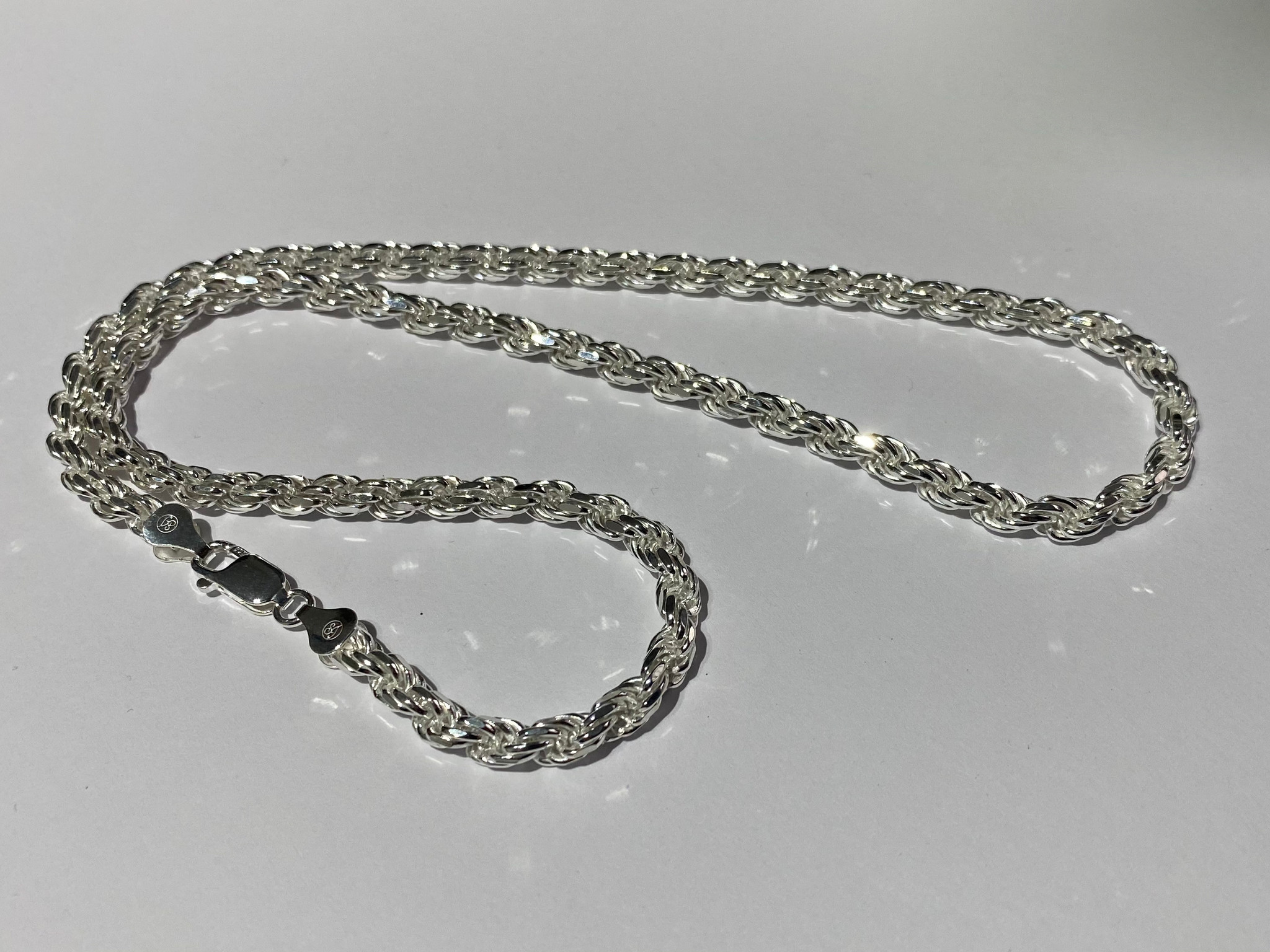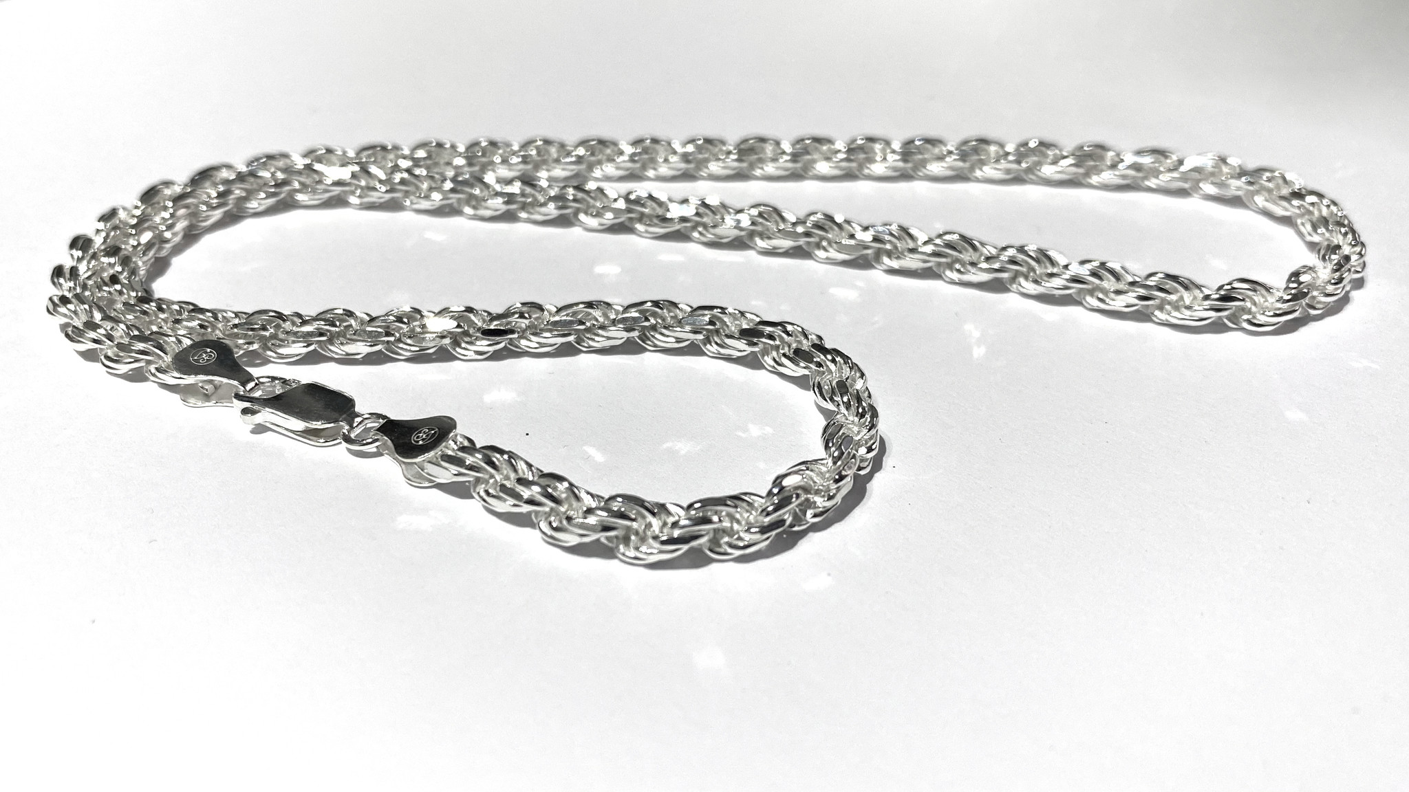 Dikke massieve koord of rope heren schakel ketting gemaakt van 925 zilver. De ketting heeft een lengte van 70 cm en is 5 mm dik, rond
