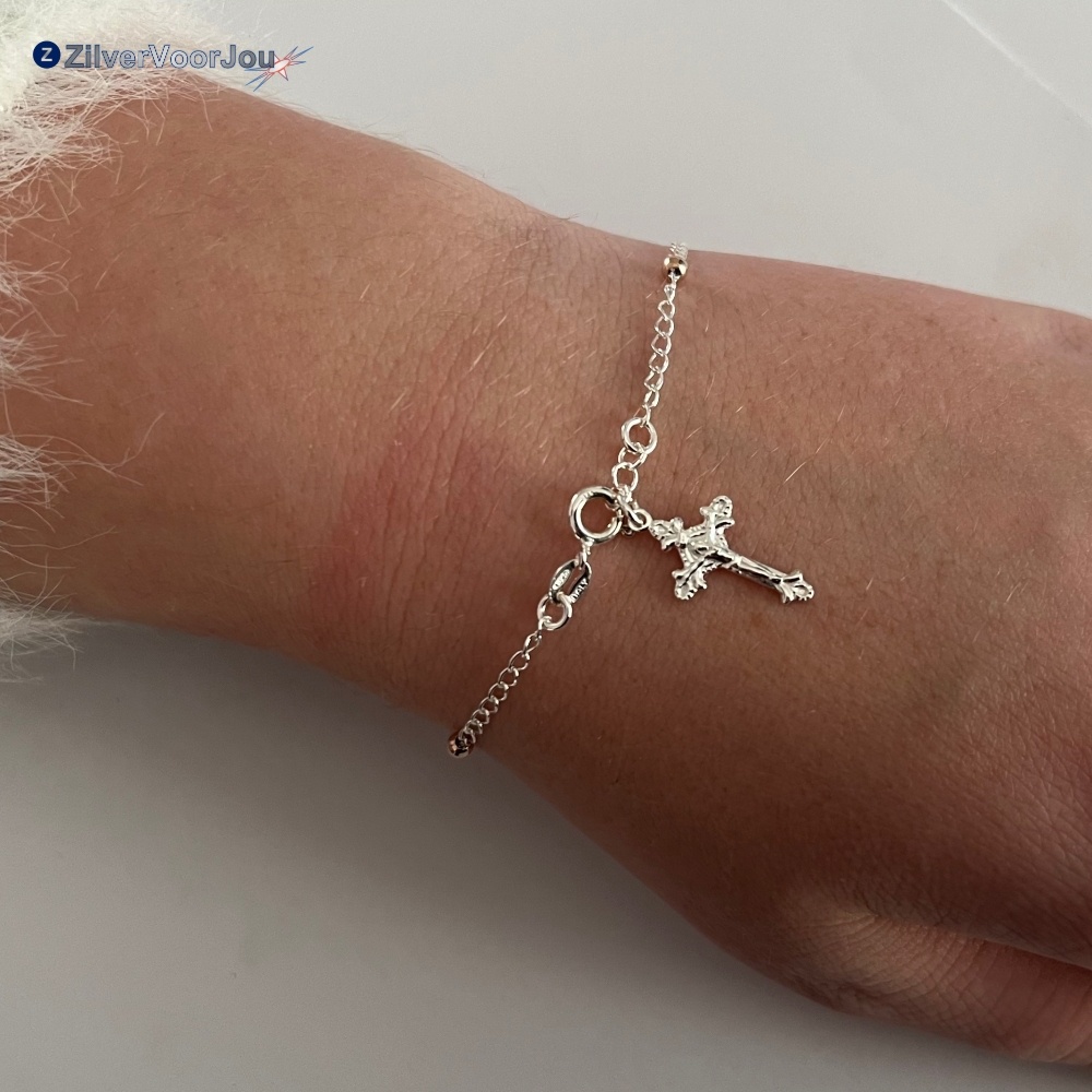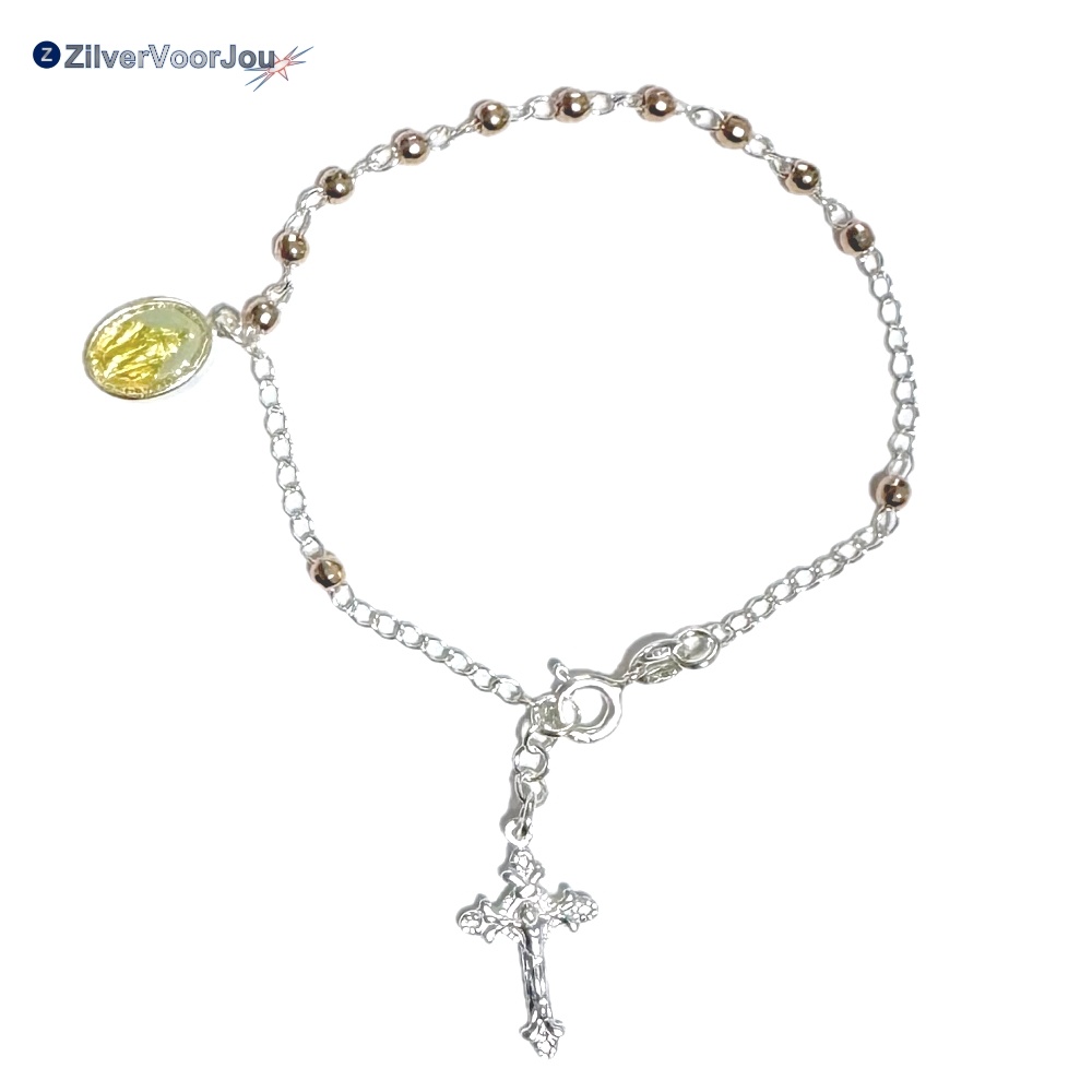 Erg mooi echt zilveren rozenkrans armbandje met een kruisje en een scapulier hangertje.