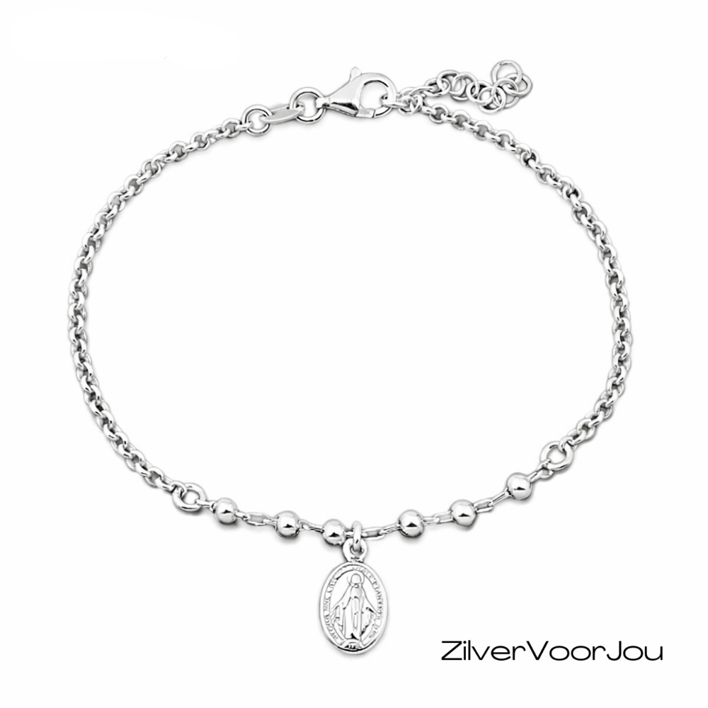 Erg mooie rolo schakel armbandje met 6 balletjes en een scapulier hangertje. Het armbandje heeft een lengte van 18 cm met een verlenging naar 20 cm