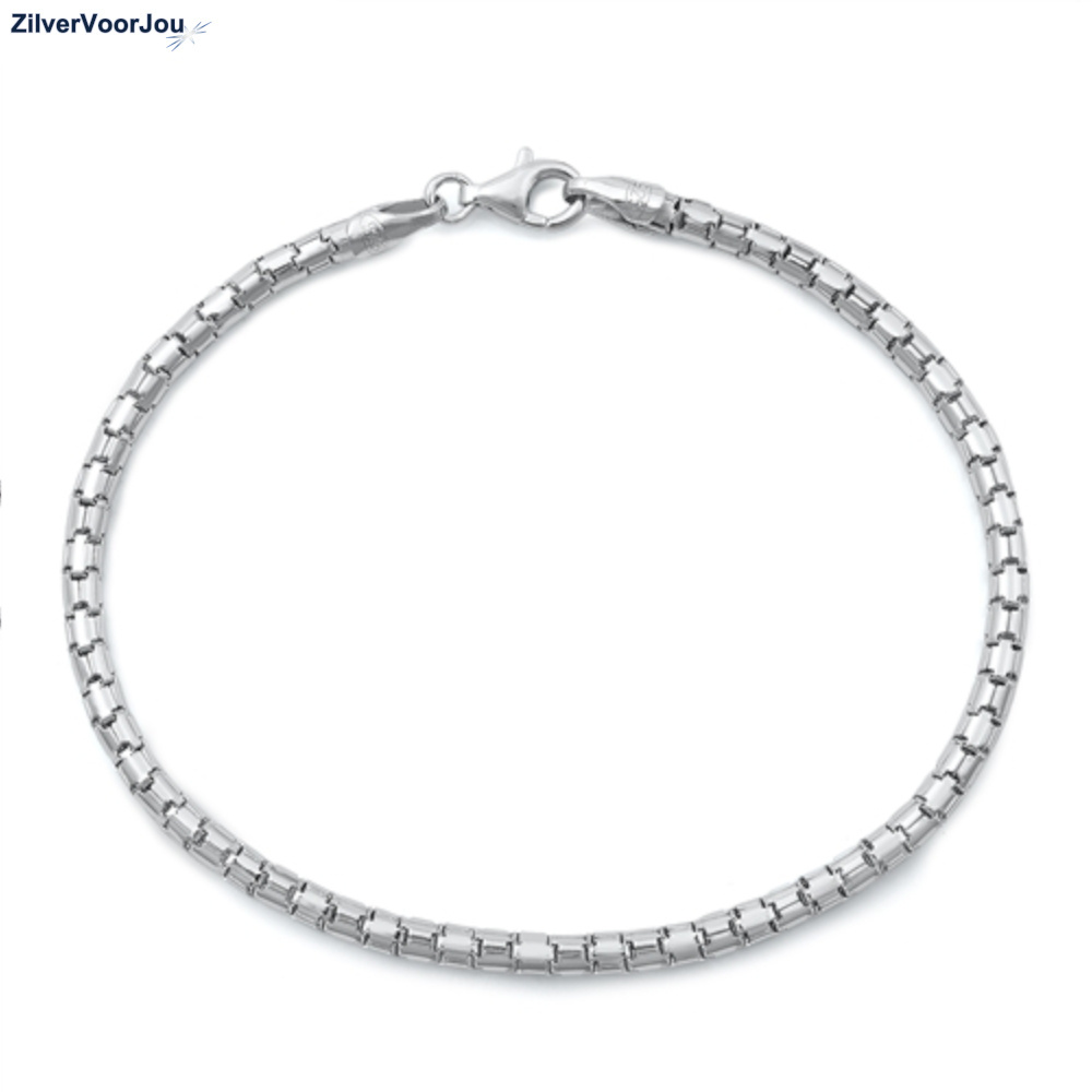 Zilveren Italian schakel armband. Prachtige, lichtgewicht, slang model armband. Gemaakt van 925 zilver en gerhodineerd.
