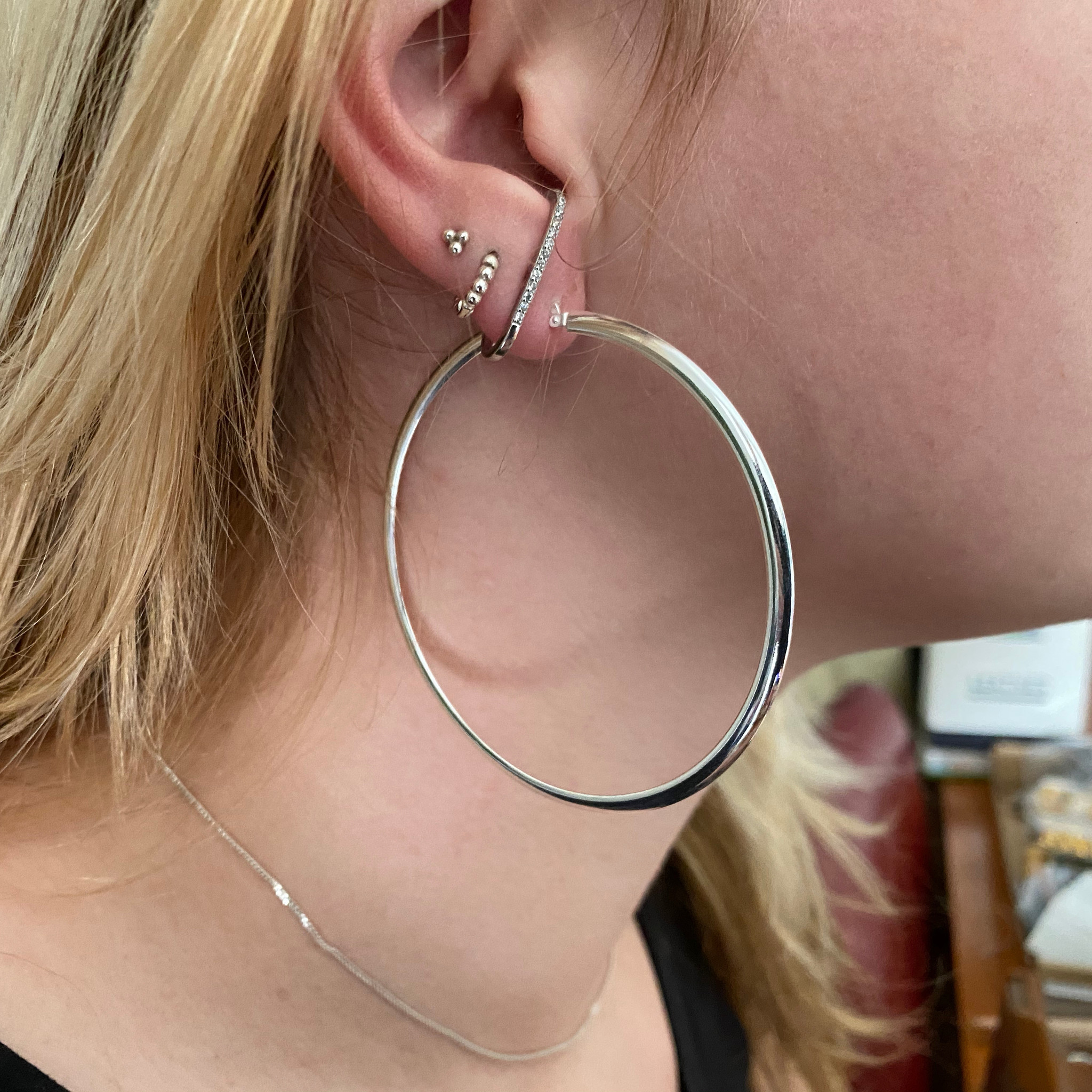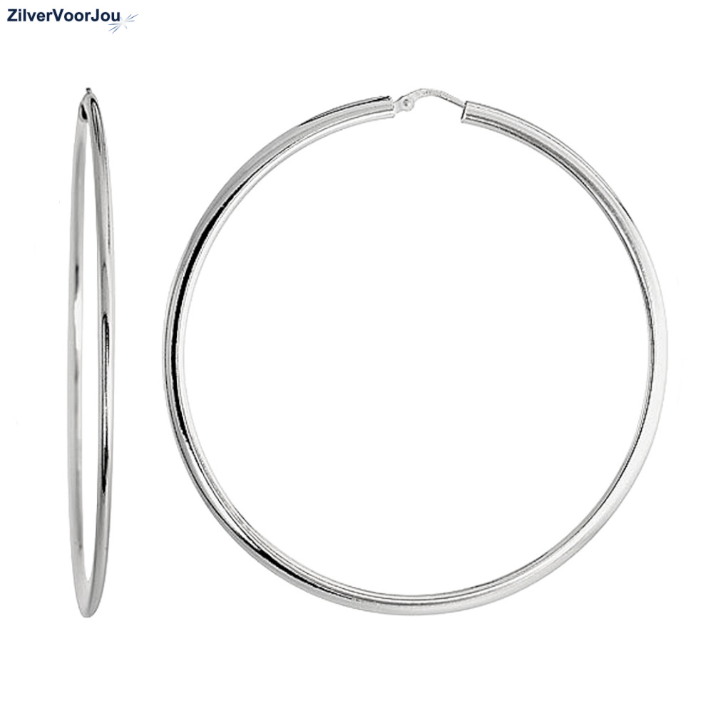 Alles over dit productDesign oorringen met een vlakke platte buis. Grote oorringen met een diameter van 65 mm. De buis is 2,25 mm dik en 3 mm breed. Geheel gemaakt van 925 zilver. De oorringen sluiten met een makkelijke scharnier sluiting.Must have!