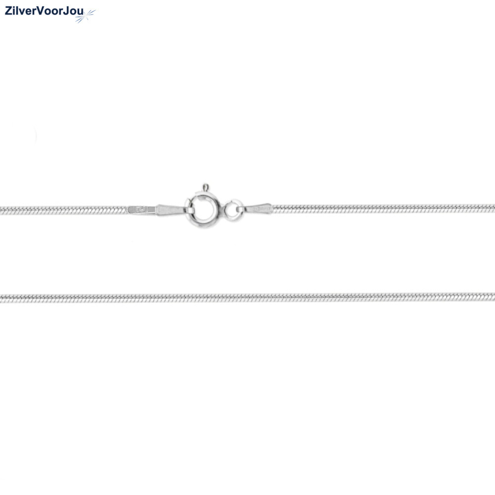 Echt zilveren mooie elegante dunne slang ketting met een lengte van 45 cm en 1.1 mm dik. Tijdloos collier. Schitterend om zo te dragen maar ook geschikt voor een kleine kettinghanger.