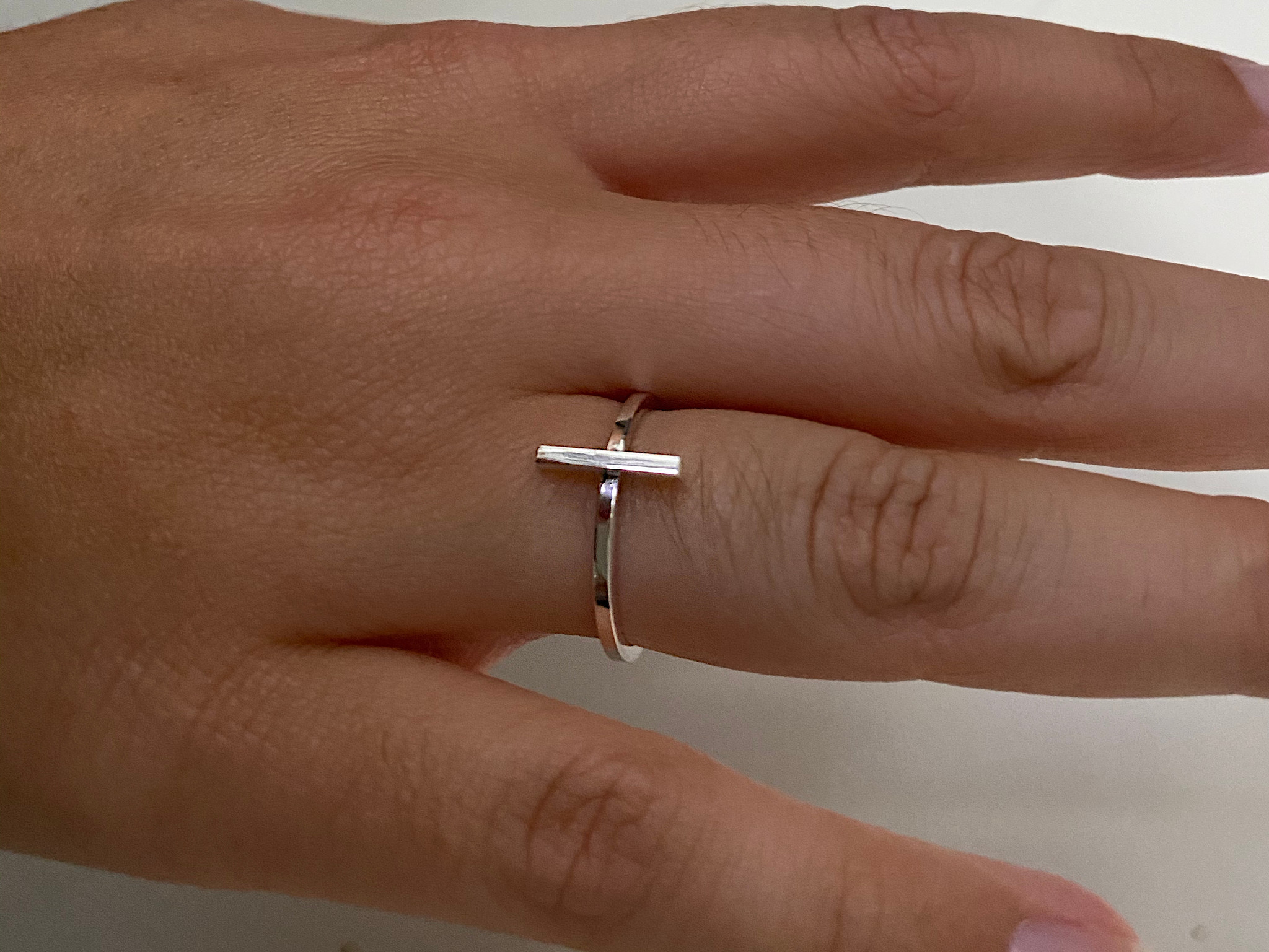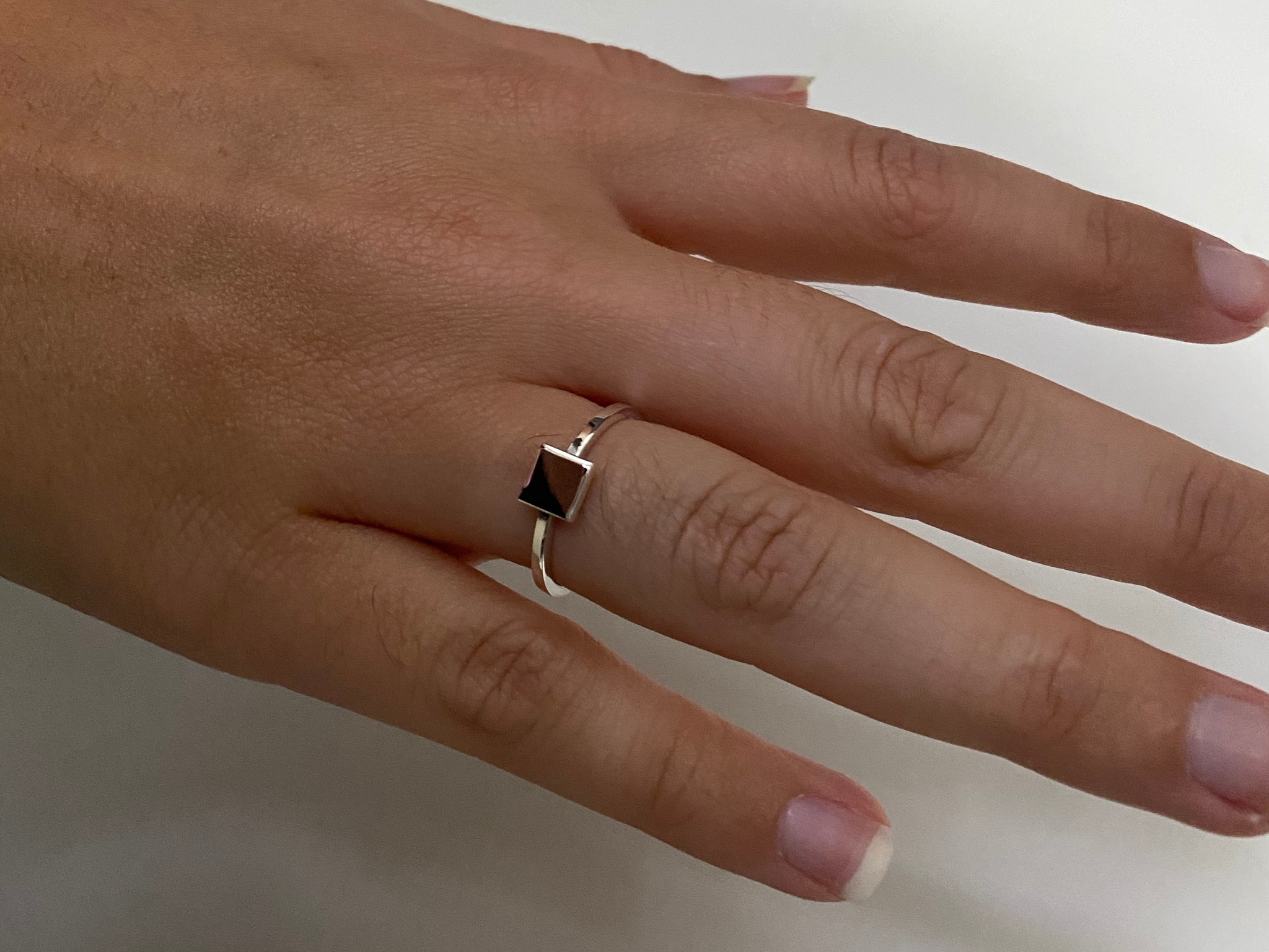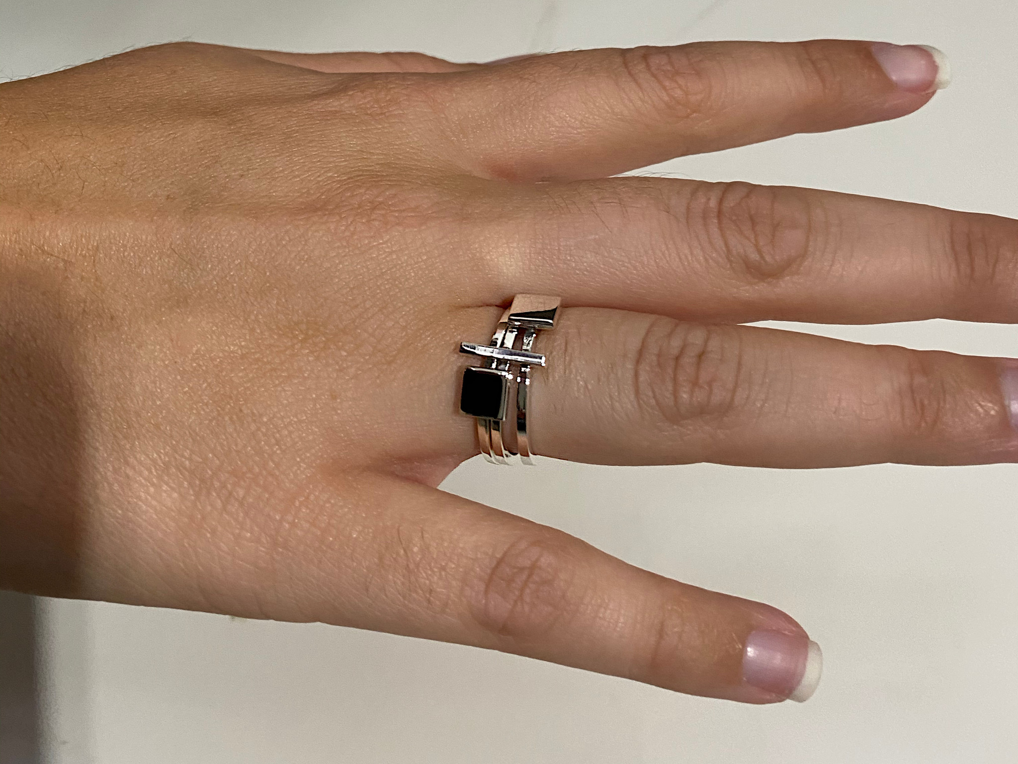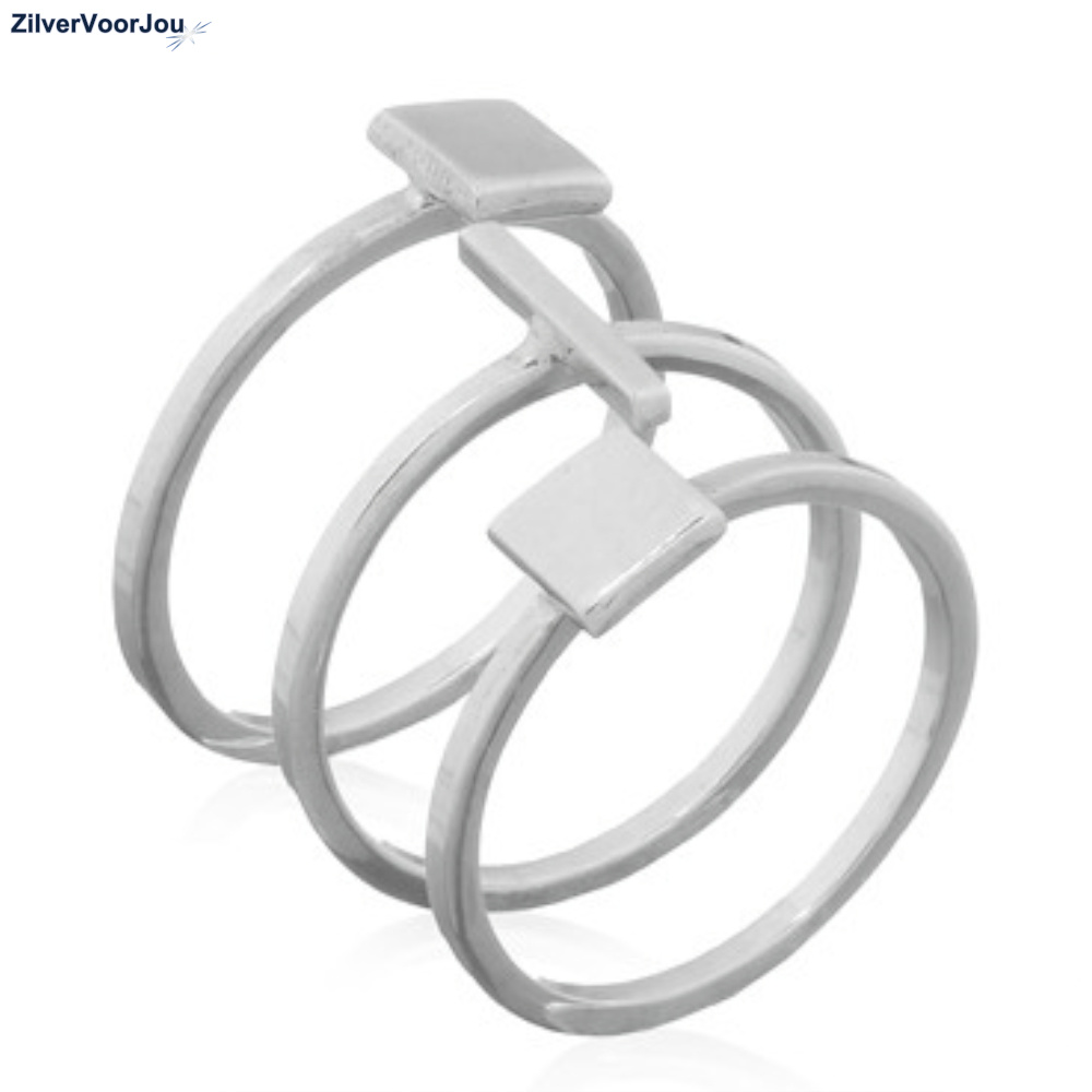 Mix en match met deze leuke speelse 3-delige ring. 2 ringen met een vierkant en 1 ring met een staaf. Super om samen te dragen maar apart is net zo leuk. De ringen zijn gemaakt van 925 zilver. Als je de 3 ringen bij elkaar draagt dan is de ringkop circa 11.5 mm.