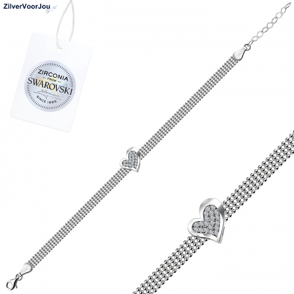 Zeer elegant zilveren armbandje met in het midden een hart bezet met Swarovski zirconia.