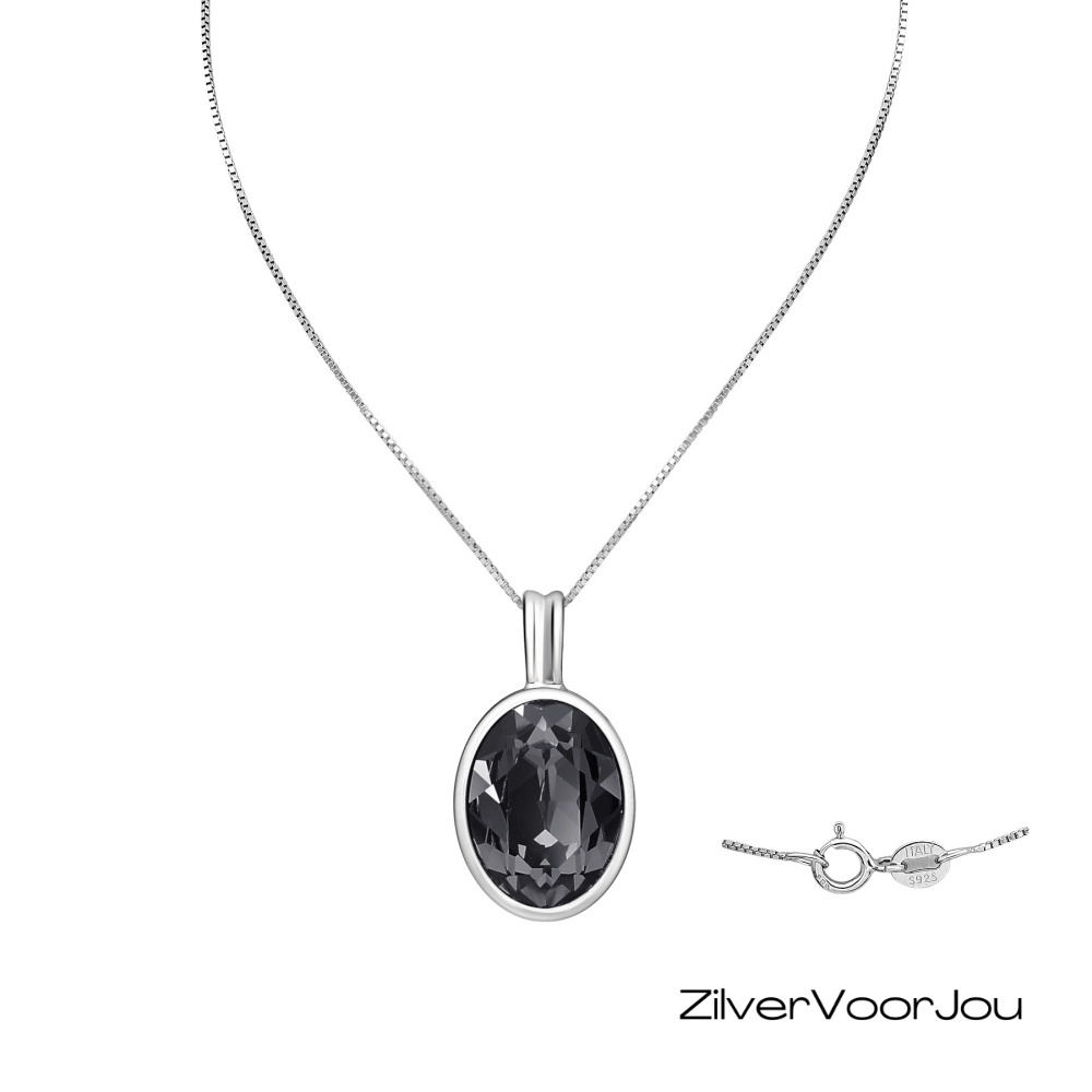 Wat een juweeltje. Een prachtige ketting met een grote silver night Oostenrijks kristal hanger.