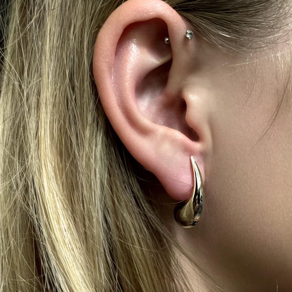 De oorbellen hebben een lengte van 25 mm en zijn op het breedste gedeelte 15 mm breed. De oorbellen zijn hol van binnen dus niet te zwaar in de oren. De set weegt 3.7 gram.