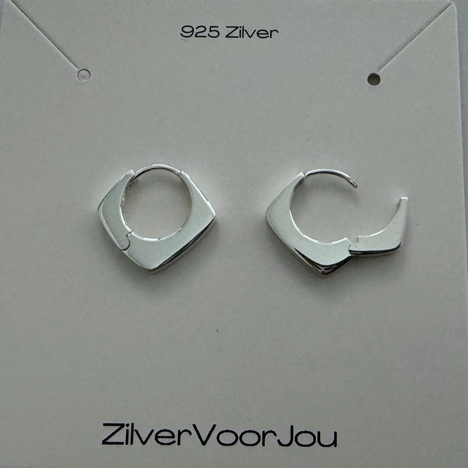 Retro hoogglans klik oorringen. Mooi design triangel oorringen gemaakt van 925 zilver.