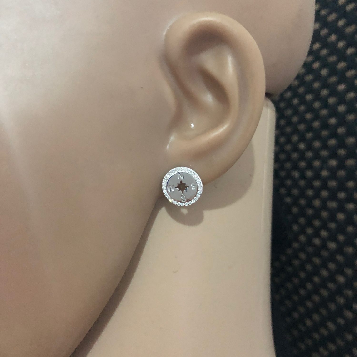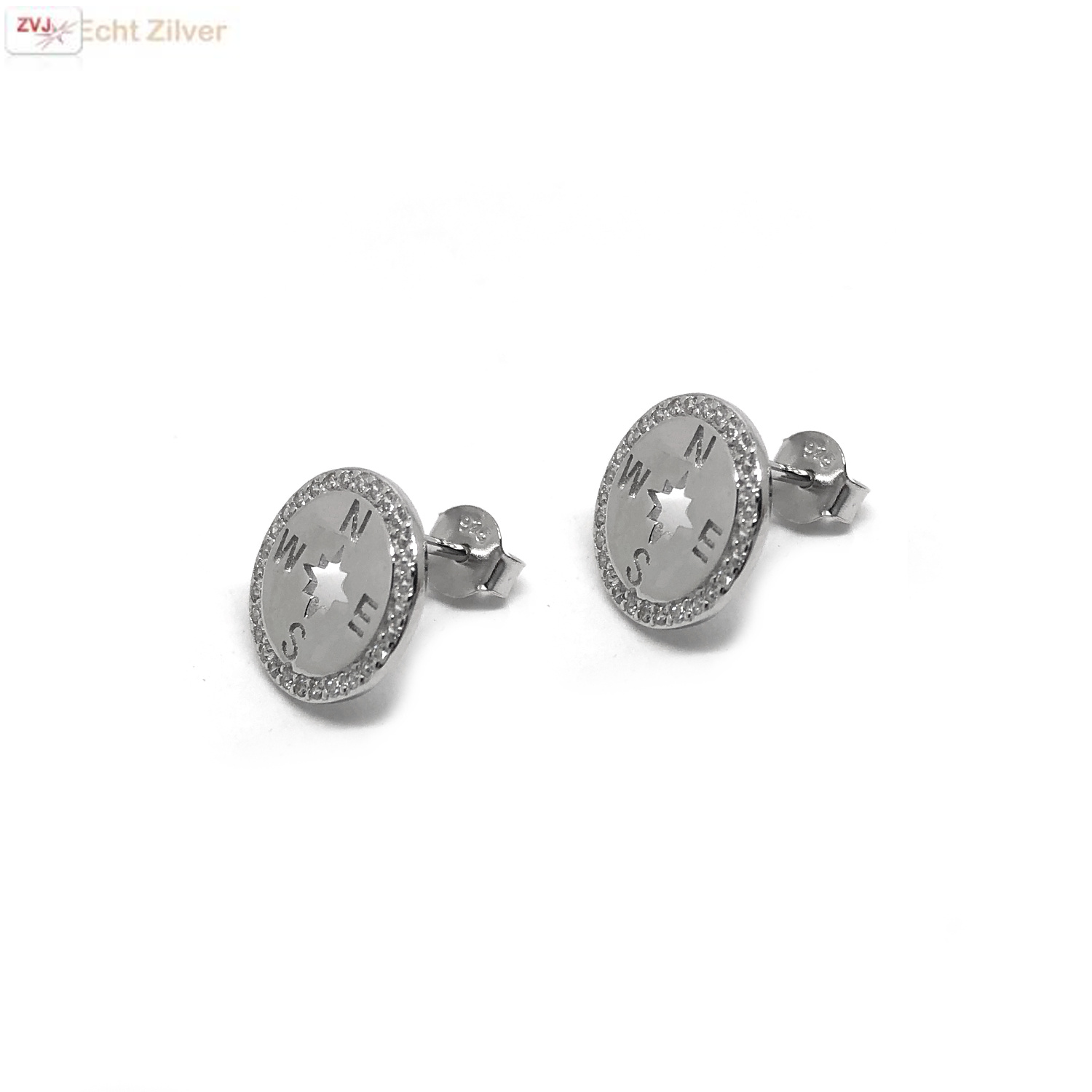 Super lieve oorstekers. Een windroos of kompas omringd door kleine witte zirkoon in pave zetting. Gemaakt van 925 zilver en afgewerkt met een rhodium beschermlaag. De oorstekers hebben een diameter van 12 mm.