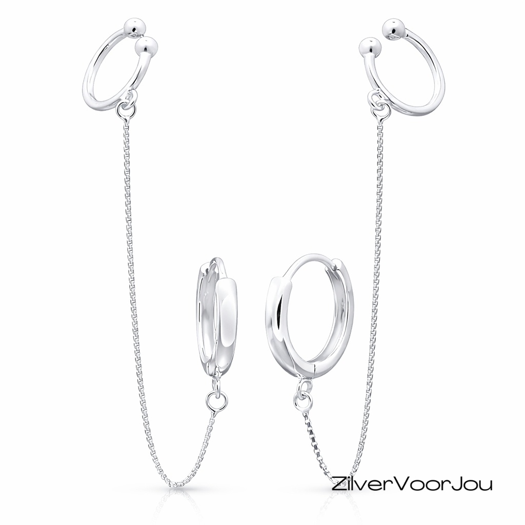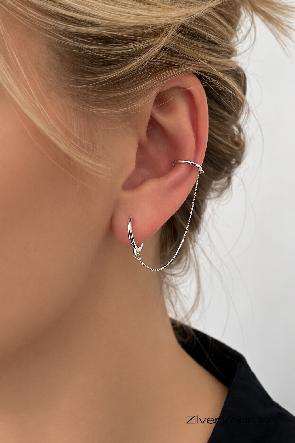 Je ontvangt 2 hoop cuff chains voor elk oor 1tje. De oorbellen zijn gemaakt van 925 zilver.